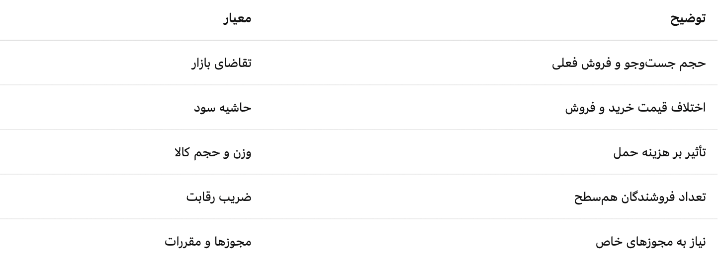 2.2 معیارهای انتخاب کالا