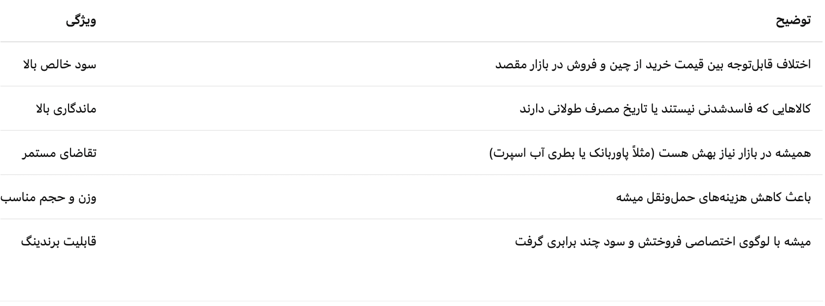 ویژگیهای یک کالای پرسود وارداتی